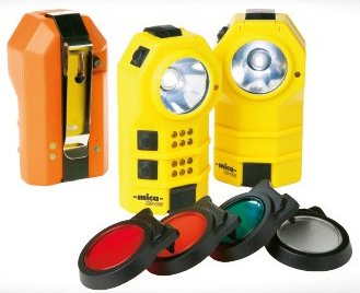 In addition to the main High-Power LED, the ML-601 incorporates a matrix of twelve red 5mm LEDs with a separate switch for signaling purposes and the ML-602 features matrixes of six red and six green LEDs, respectively, with separate switches for controlling either signaling light source. The signaling matrix is visible over distance of more than 1,5 kilometers. The housing is splash proof and equipped with a steel belt clip. Also available in NATO-green housing and in other colors.